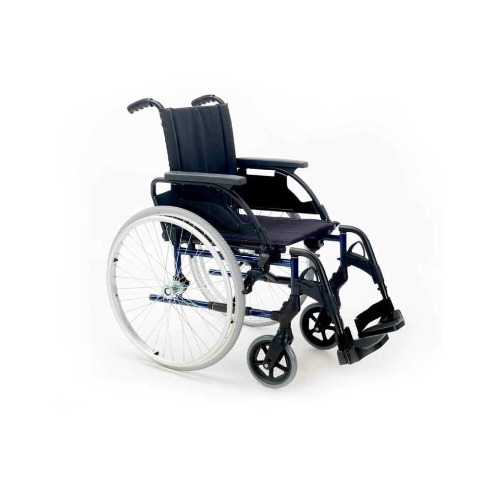 Travão com pega ergonómica e pastilha de travão otimizada para uma travagem segura. Apoios para braços rebatíveis através de uma alavanca de grandes dimensões, com fixação traseira reforçada, e almofadas macias. Ajustáveis em comprimento com a utilização de ferramentas. Apoios de pés desmontáveis, rebatíveis e resistentes, com alavanca de travão cómoda, acessível e ergonómica. Plataformas ajustadas à largura da cadeira.