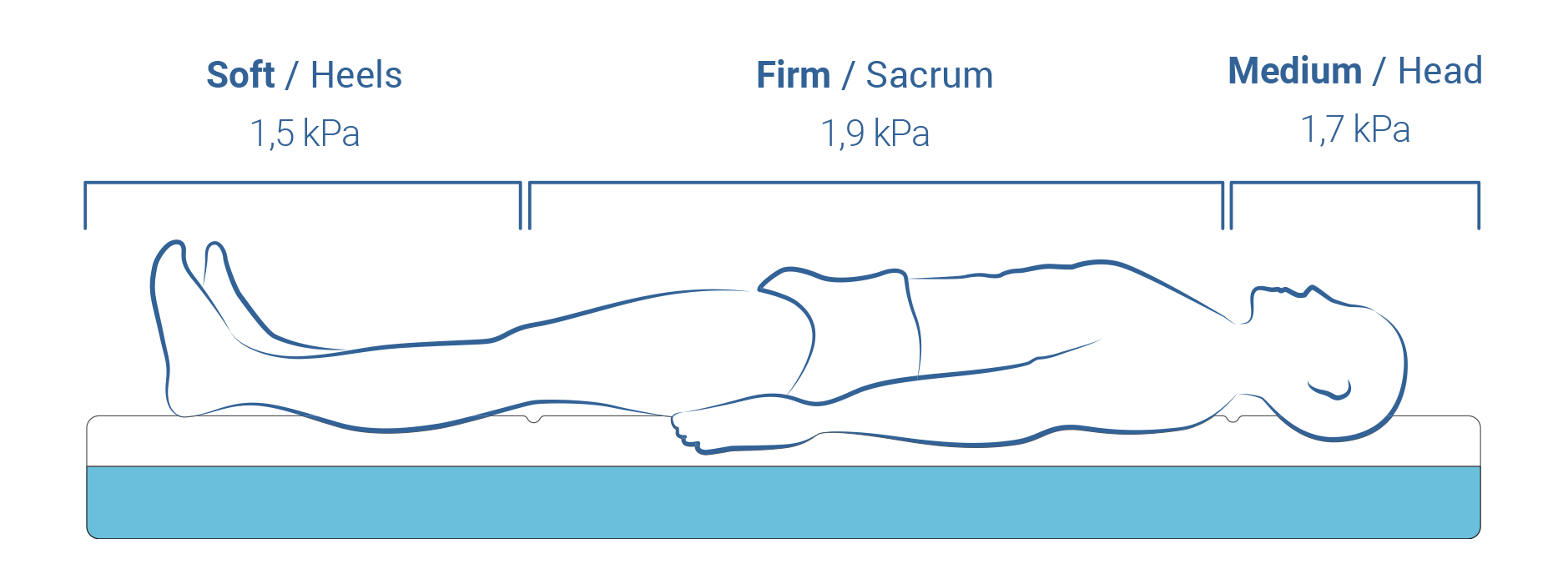 • Firmesas diferentes para a zona da cabeça, lombar e calcanhar, adaptando-se à morfologia de cada utilizador.